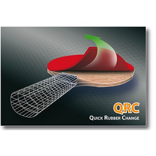 The unique Schildkröt QRC system is designed to replace and upgrade rubber and sponge within seconds. Simply pull the old one off and stick on the new one. The QRC system avoids cleaning off old sponge and rubber leftovers on the blade as well as gluing and cutting new rubbers.